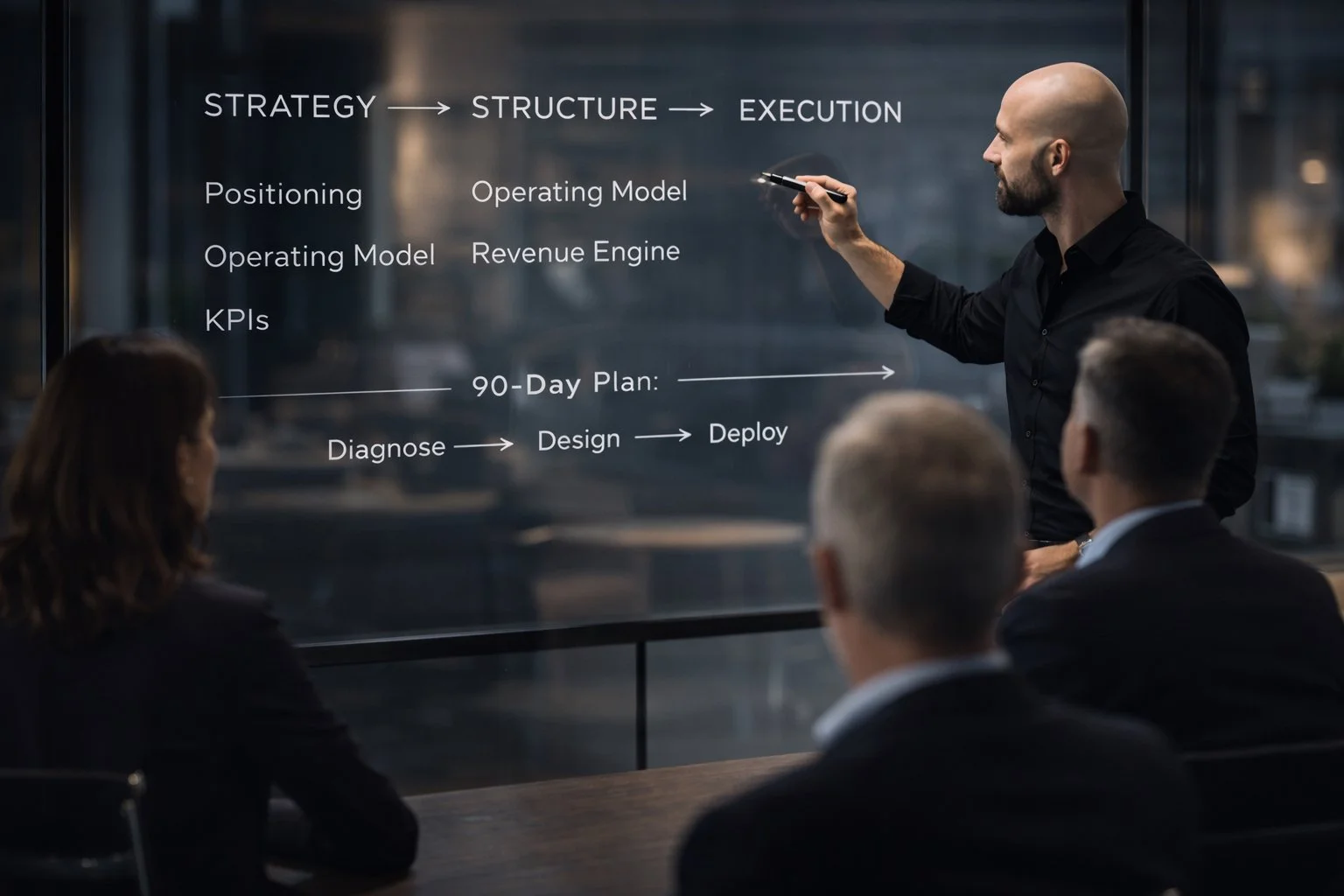 In 30 minutes we’ll diagnose where execution is breaking — positioning, handoffs, pipeline structure, or operating model.